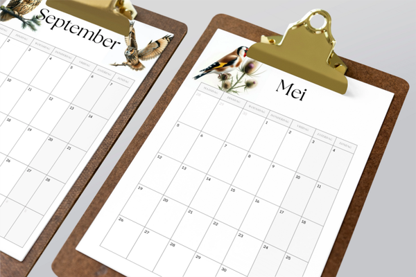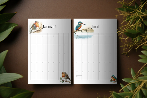 Helemaal klaar voor het nieuwe jaar, met deze kalender. Een digitale download met 12 pagina's en elke maand een andere vogel. De vogels op deze kalender, zijn gelijk aan de uitdaging met birdline.